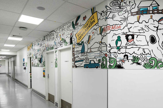 Hand-painted mural for New World Supermarket (NZ). Painted using lettering quill brushes and acrylic paint.